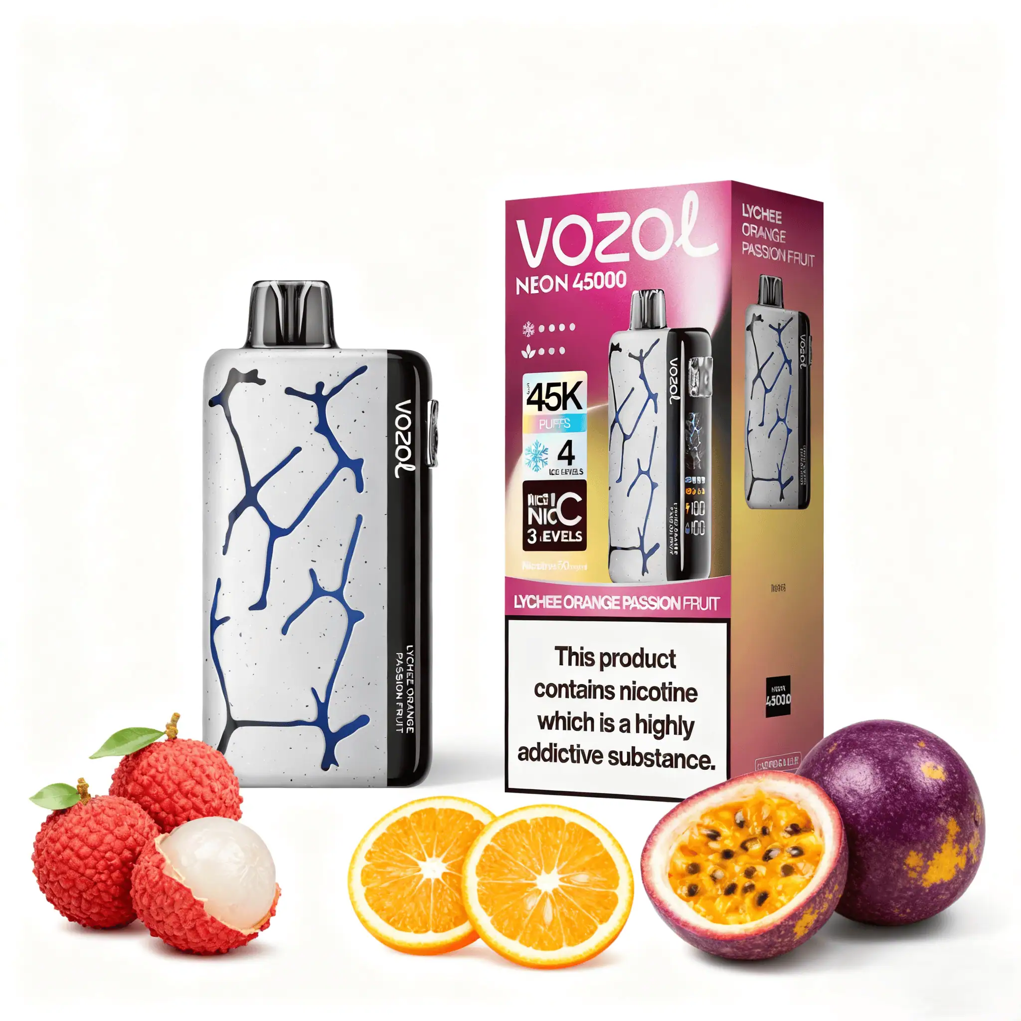 ¿Qué hace que VOZOL NEON 45000 Lichi Naranja Fruta de la Pasión sea único?