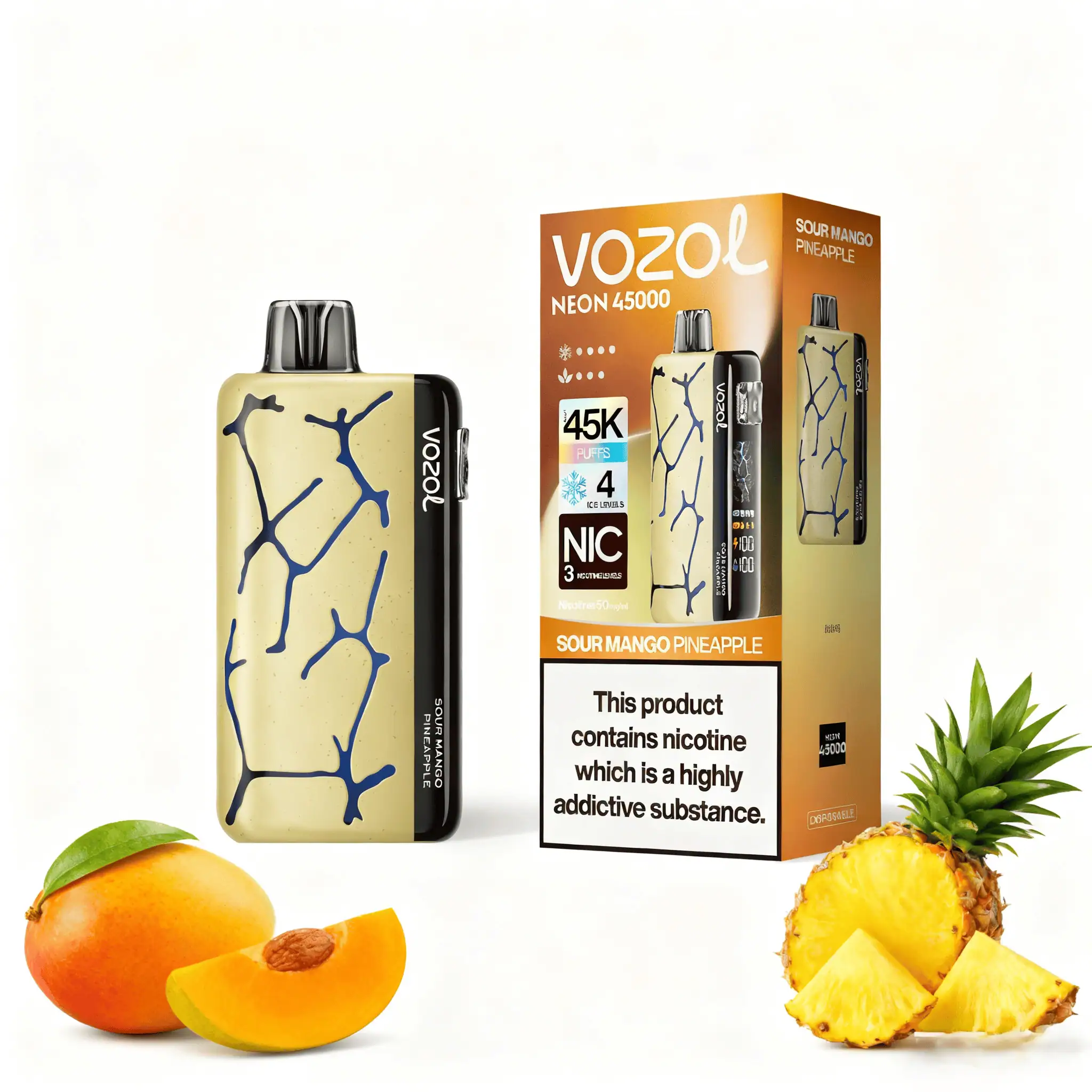 El VOZOL NEON 45000 Sour Mango Pineapple combina la acidez del mango con la dulzura de la piña para crear un vibrante sabor tropical. Con 45.000 caladas, doble bobina de malla, 4 niveles de refrigeración y Smart Display: diversión exótica y afrutada al más alto nivel.