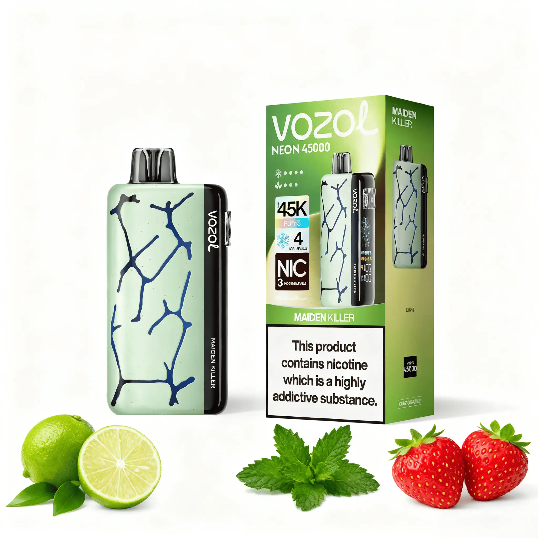 Der VOZOL NEON 45000 Maiden Killer ist ein kraftvolles, gewagt benanntes Aroma, das mit einer mitreißenden Kombination aus süßen, fruchtigen und frischen Noten überzeugt – intensiv, unwiderstehlich und mit einem Abgang, der im Gedächtnis bleibt. Diese wiederaufladbare Premium-Einweg-E-Zigarette der neuesten Generation liefert bis zu 45.000 Züge aromatischen Dampf und setzt auf maximale Wirkung bei jedem Zug.